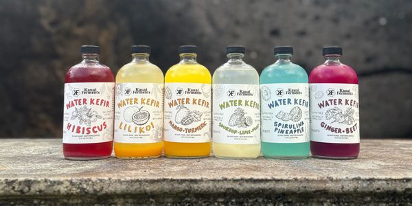 Kauai Ferments specializes in Sparkling Water Kefir, a highly probiotic, naturally fermented beverage that is alive with beneficial bacteria goodness! We also produce lacto-fermentations (lactic acid bacteria "LAB") such as raw sauerkraut, kimchi and other seasonal fermented veggies. Kauai Ferments uses locally sourced and organic ingredients whenever possible.